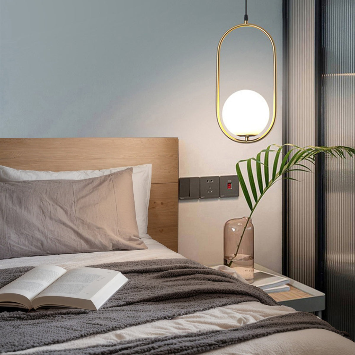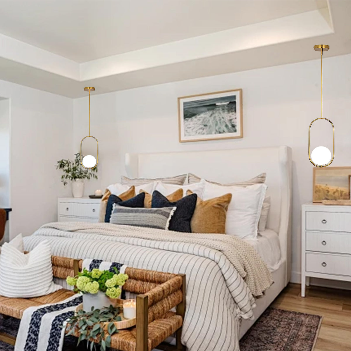 Gold Pendant Light – Single Opal Glass Hanging Fixture for Bedroom, Entryway or Kitchen Bar