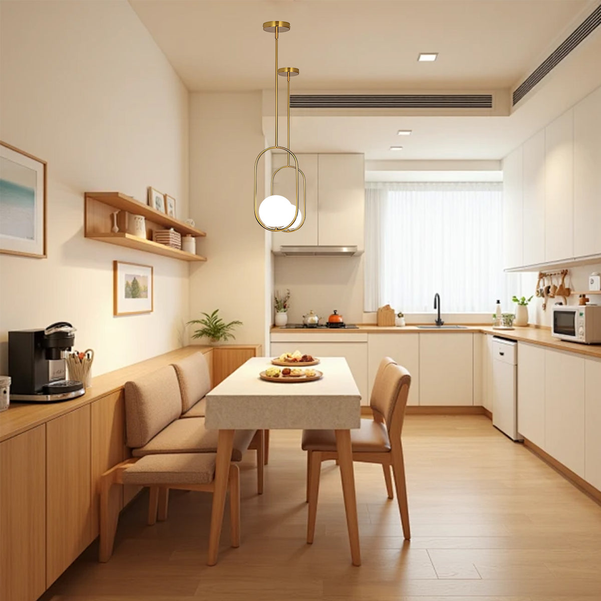 Gold Pendant Light Single – Opal Glass for Entryway, Bedroom or Kitchen Bar by Coolilumi
