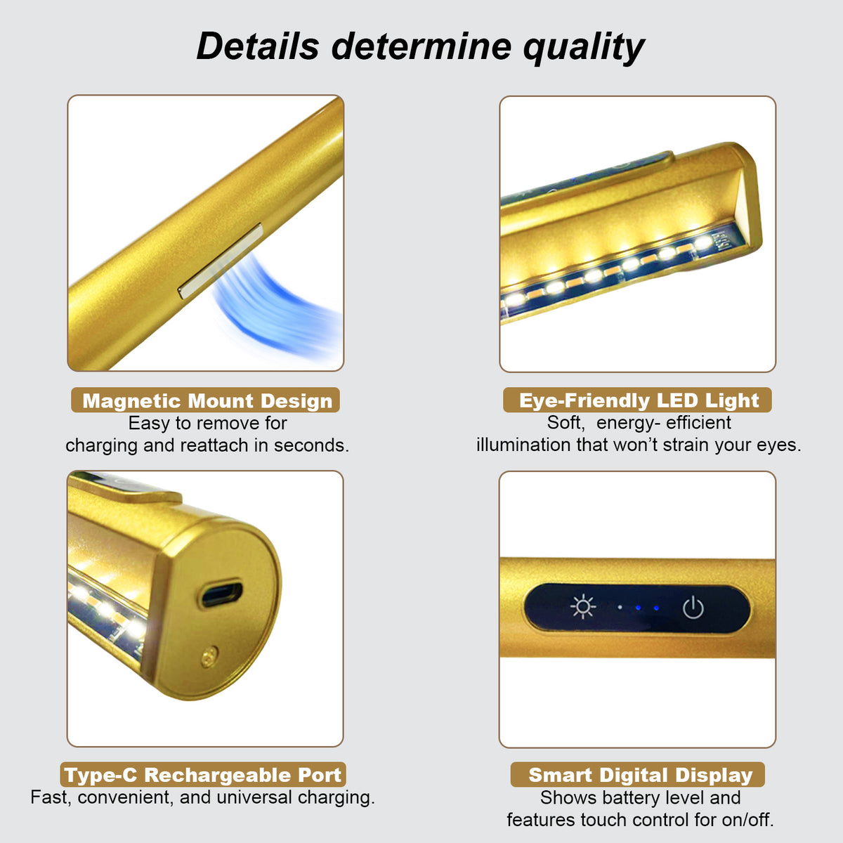 This magnetic gold picture light delivers museum-grade illumination with a smart digital display that shows exact battery level—so your art is always lit, never left in the dark.